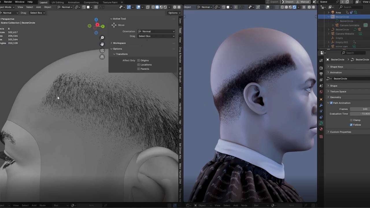 An overview of character grooming workflows in Blender, from base setup through to final hair detail.