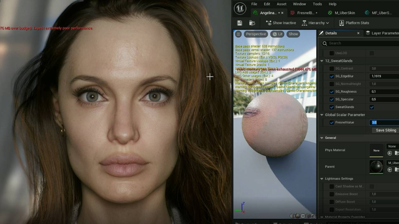 A UE5 likeness study recreating Angelina Jolie, covering material setup in UE5.